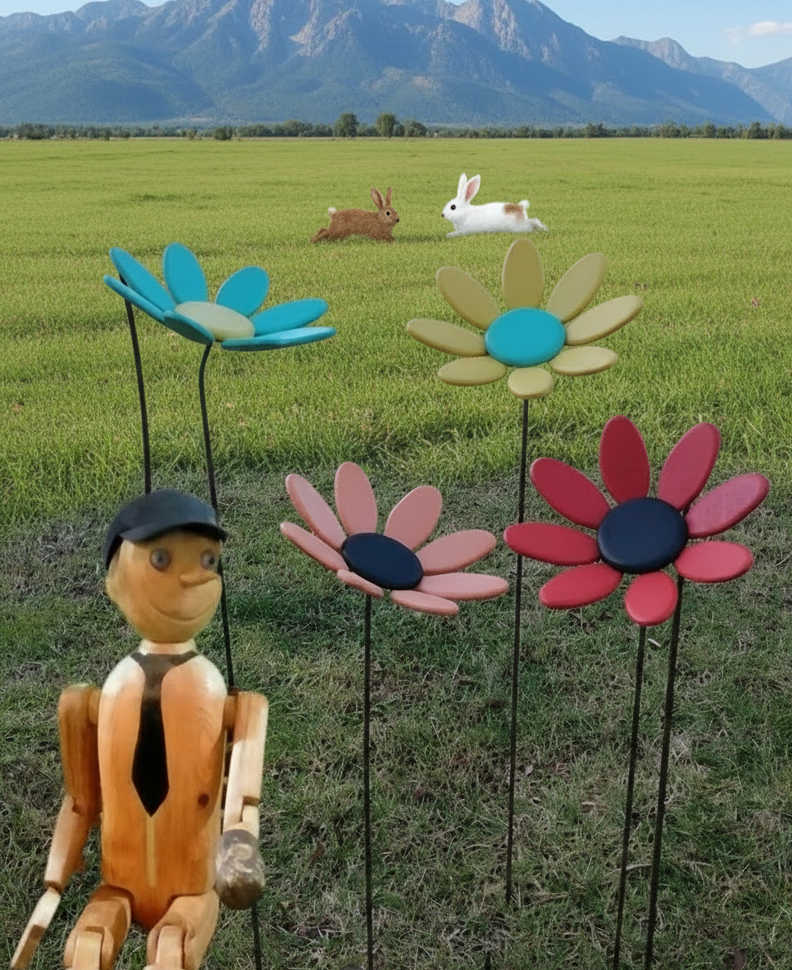 Fiorellone in legno massello e dai colori vivaci.La sua altezza di 80cm lo rende vistoso e allegro in ogni angolo del vostro giardino.